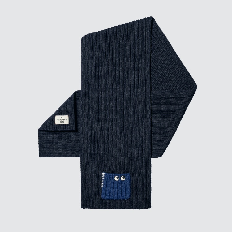 如果你的穿搭哲學講求低調、百搭,也可以在此次系列中找到適合自己的單品,好比說上圖這款海軍藍針織披巾,綁在脖子上不只保暖還有雙小眼睛替你賣萌。(價格:NT$990)