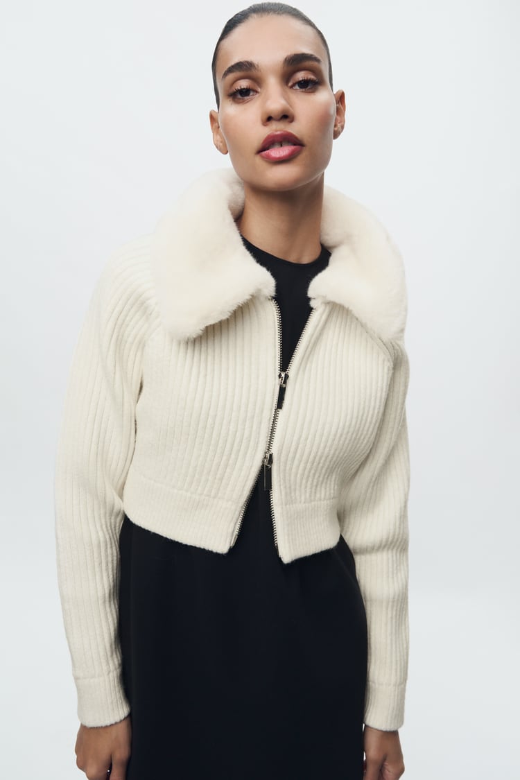 冬天到了怎麼能少了「毛茸茸」單品,這款奶油白色的短版開襟衫,領口的毛毛翻領不只舒適,更能因為份量上的差距,可以視覺讓臉顯得更小,雙向調整的金屬拉鍊可以讓身材比例更好!(價格:NT$1,990)