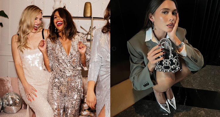 而除了鞋款的搭配外,想要成為派對中的鎂光燈的主角,包款的搭配,也是絕對要的:既俏皮又大器的串珠抽繩包,彷彿聖誕彩球般裝飾於緞面包身上,充分彰顯出即將前往派對的興奮心情;耀眼又神秘的串珠緞面手提包,黑色柔軟緞面材質搭配銀色璀璨珠鍊,不僅突顯了優雅品味,也讓造型散發低調奢華的迷人魅力;而充滿未來金屬感的銀色鱷魚紋彎月小流浪包,以及耀眼的金蔥鍊條肩背包,則以今年流行的Y2K科技銀色點出時髦亮點。無論肩揹或手拿都有型,完美駕馭各式風格的派對造型!