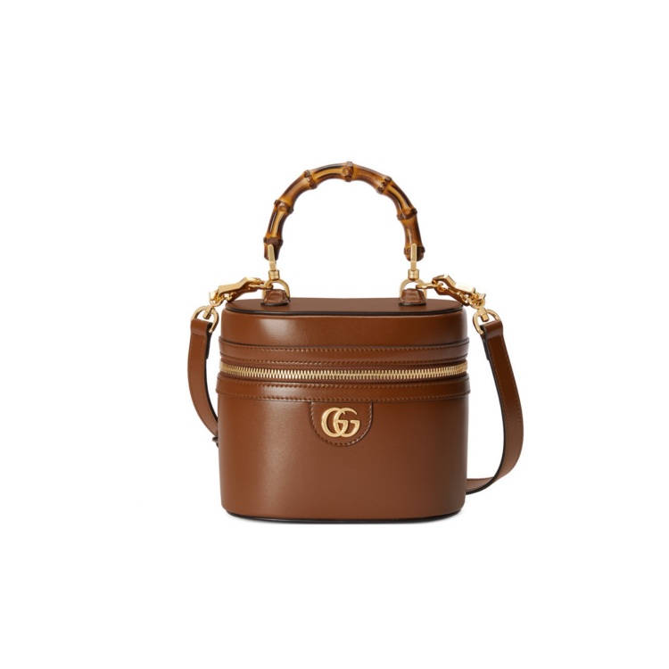 竹節是 Gucci 最具代表性的元素,這款以化妝包為藍本的包款,在提把的設計上便是運用竹節為材料,包身上裝飾著 GG logo 的點綴,讓整體包款以可愛且復古的樣貌呈現。(商品售價:NTD58,700)