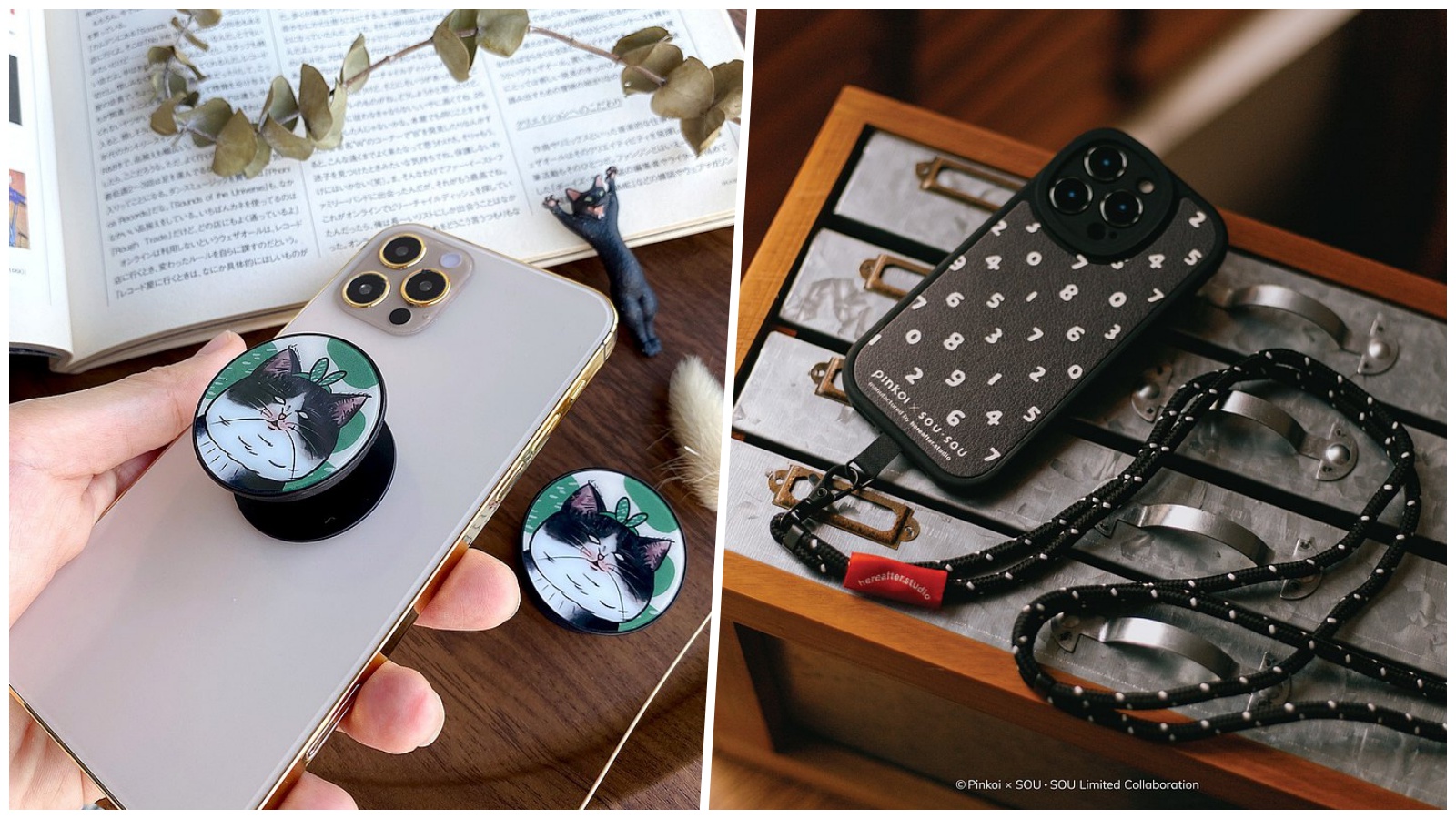 SOU・SOU手機殼+手機掛繩組合系列,仿皮凹凸質感材質的手機殼,兼具了外型質感與手感,再加上限定手機掛繩,在獨特的童趣感中也能同時擁有低調的奢華感,搭配經典圖案讓人愛不釋手,SOU・SOU迷千萬別錯過!