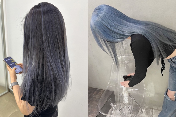 冷調肌的儂粉在這個秋冬可以大膽嘗試這款迷霧藍灰,因為它不僅不易撞色,更能運用線條染、漸層染、裙襬染等手法,或是利用漂髮次數做出深淺變化,打造出截然不同的氛圍,像是冰川般的淺藍灰漸層,帶有一點動漫角色的二次元感;黑髮與藍灰色挑染則是可以呈現出韓妞的時髦感。