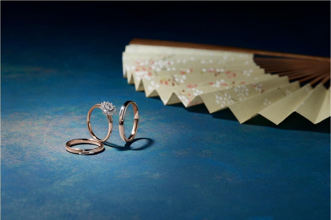 「初明HATSUKARI」系列同時也推出結婚對戒,運用極致的工藝技術,在戒環上呈現日本和服常用的傳統圖樣「ヱ霞(EGASUMI)」,代表朝陽的光芒從天空間隙灑落,並暈染整片新年的天空。採用玫瑰金與鉑金的溫暖搭配,以及圓潤滑順的佩戴感受,讓此款成為象徵永恆且最溫暖的存在。此款對戒同時也推出不同寬度的無鑲鑽款式,無論男女都可以選擇喜歡的戒寬,不受性別限制。另外,初明HATSUKARI訂婚鑽戒與結婚對戒也可以同時配戴,透過訂婚鑽戒展現愛情新旅程的第一道曙光,而結婚對戒則代表了曙光暈染的浪漫旅途。
