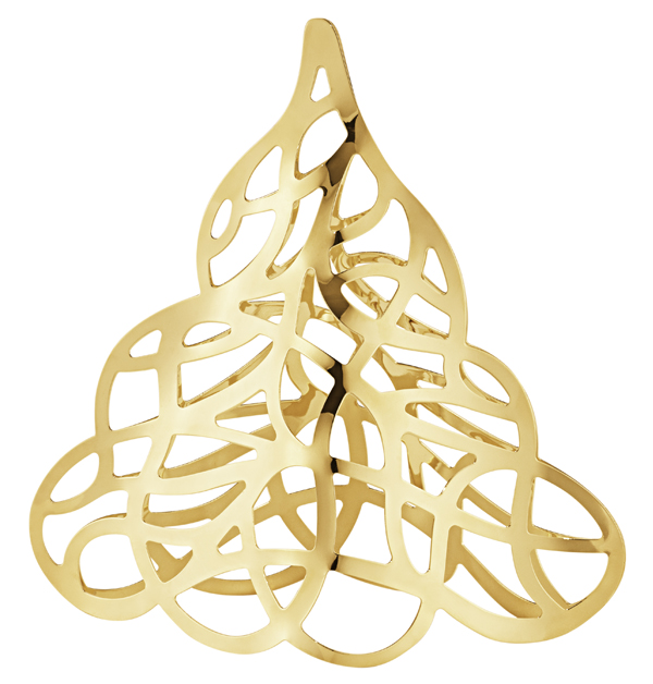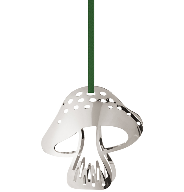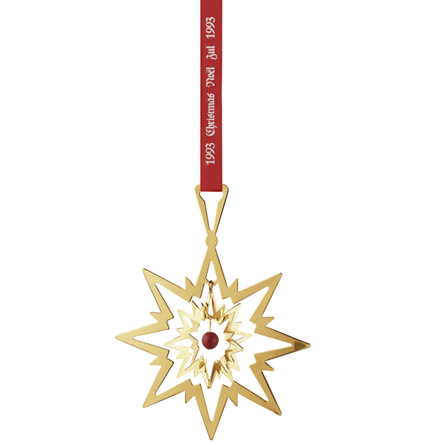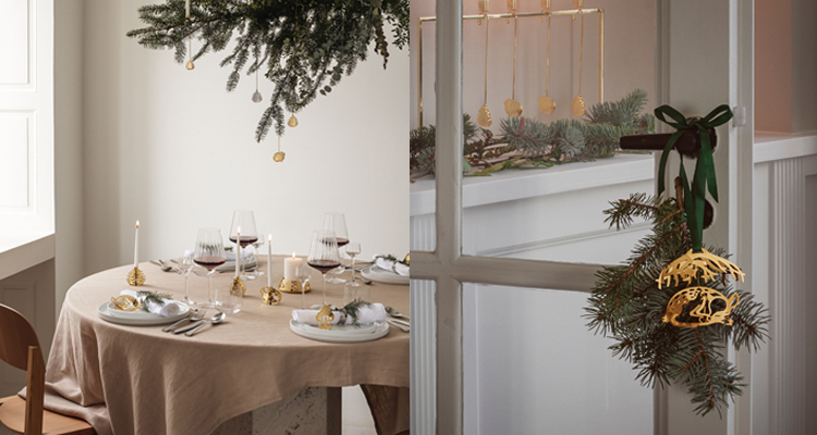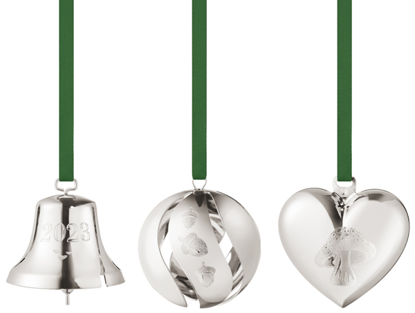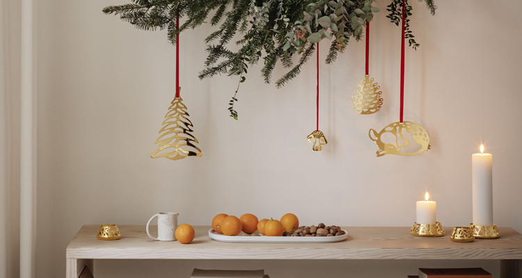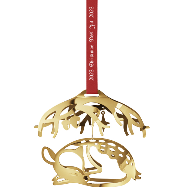 由Sanne Lund Traberg所設計的懸掛吊飾,包含以18K鍍金黃銅與鍍鈀兩種材質製成的款式精品,有小鼠、小鹿、松果及樅樹的造型裝飾,也有像刻飾蘑菇圖騰的聖誕之心、飾以松果圖樣的啞光聖誕球…每款單品皆可用來點綴聖誕樹;不僅如此,今年更復刻推出由藝術家Flemming Eskildsen於1993年所設計的鏤空星芒吊飾,此創作採用三個不同尺寸的星星框體,中心處綴以紅色圓珠,其活動式的設計結構,亦打造出360度的幾何立體星芒,並在黃銅鍍18K金材質的詮釋下,勾勒唯美光影,再搭配印有1993年份字樣的紅絲帶,為時隔30年的華麗回歸,迎來別具意義的美好意象。