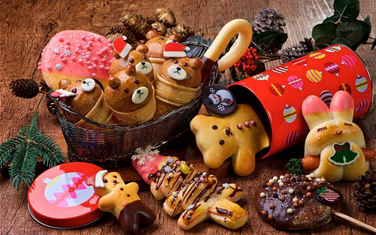 「普諾麵包坊‧忠孝店」打造一系列聖誕應景甜點,不只好吃、更好拍!每年挾高人氣的「聖誕熊甜筒」以超卡哇伊熊的造型,搭配濃郁的可可氣息,巧克力口味麵團揉入蔓越莓、葡萄乾增添味覺層次,討喜模樣讓大人、小孩都會忍不住許願擁有。「草莓聖誕棒棒糖」與「巧克力聖誕棒棒糖」,將常見的方形大理石麵包升級改版,鬆軟綿柔的大理石麵包體,揉製成圓形,再沾附草莓或牛奶巧克力醬,最後灑上五彩巧克力脆球,營造歡樂繽紛的聖誕視覺,和手掌一樣大的巨型棒棒糖,讓各位立刻帶回家。質感餅乾則推薦「聖誕老人糖霜薑餅」、「雪人糖霜薑餅」、「聖誕薑餅人」系列,為聖誕佳節期間增添滿滿幸福感。還有多款Q萌造型的商品,像是口味鹹甜的「聖誕兔」、沾裹香甜巧克力醬的「聖誕熊」與「聖誕拐杖」等派對必備食玩,讓大家一起分享佳節的甜蜜喜悅。
