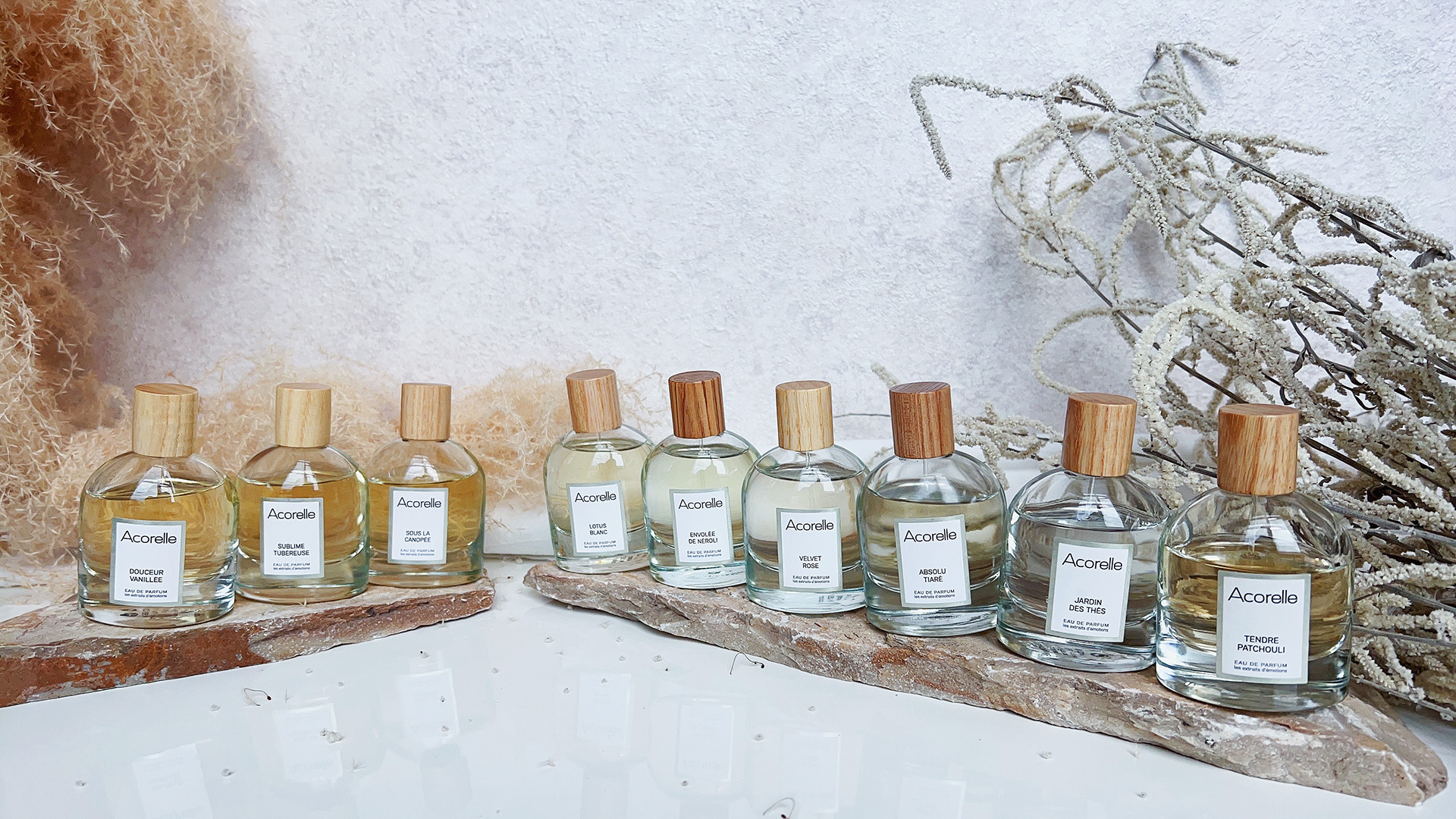 Acorelle日光意境與法國獨立調香師 Katell Plisson和 Stéphane Piquart 有機供應商合作,由於在天然香氛創作過程中,受限於有機原料的堅持選用,只有300種有機調香原料中,搭配出具有獨特層次的天然香氛。