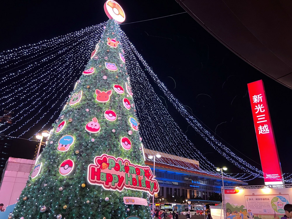 「皮卡皮卡!」廣受大小朋友喜愛的精靈寶可夢在新光三越台北站前店現身,一個個寶可夢圓臉與寶貝球化身裝飾,搭配如光瀑般璀璨的燈飾點亮10米高的聖誕樹,樹梢處更有換上聖誕裝扮的皮卡丘、傑尼龜、小火龍和妙蛙種子等,準備在與你一起為聖誕節留下最可愛逗趣的照片。