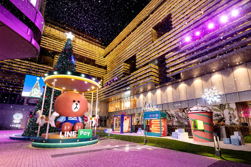 台南南紡購物中心首度與「LINE Pay」,12米高的質感聖誕樹不僅邀請到可愛的熊大店長坐鎮,在館內各處也都能捕捉到他的身影,更有大型禮物盒與咖啡屋等你前來打卡,每週五六日的19:00和20:00還有萬眾期待的飄雪秀在星空夜幕下浪漫登場。