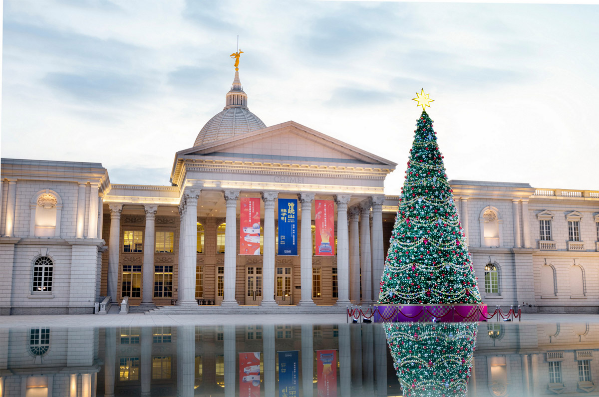 每年奇美博物館除了以聖誕樹共度佳節,更總是細心策劃一系列的活動,13米高的幸福聖誕樹以金黃色垂鍊、彩球、鏡面元素層層堆疊,在日與夜不同時分,傳遞出閃亮、溫暖的情境,而在12/16、12/17、12/23、12/24這四天更有「聖誕週末派對」,以DISCO復古風為主題,集結上百間歐風攤位並帶來豐富藝文表演,南部的朋友們千萬別錯過。