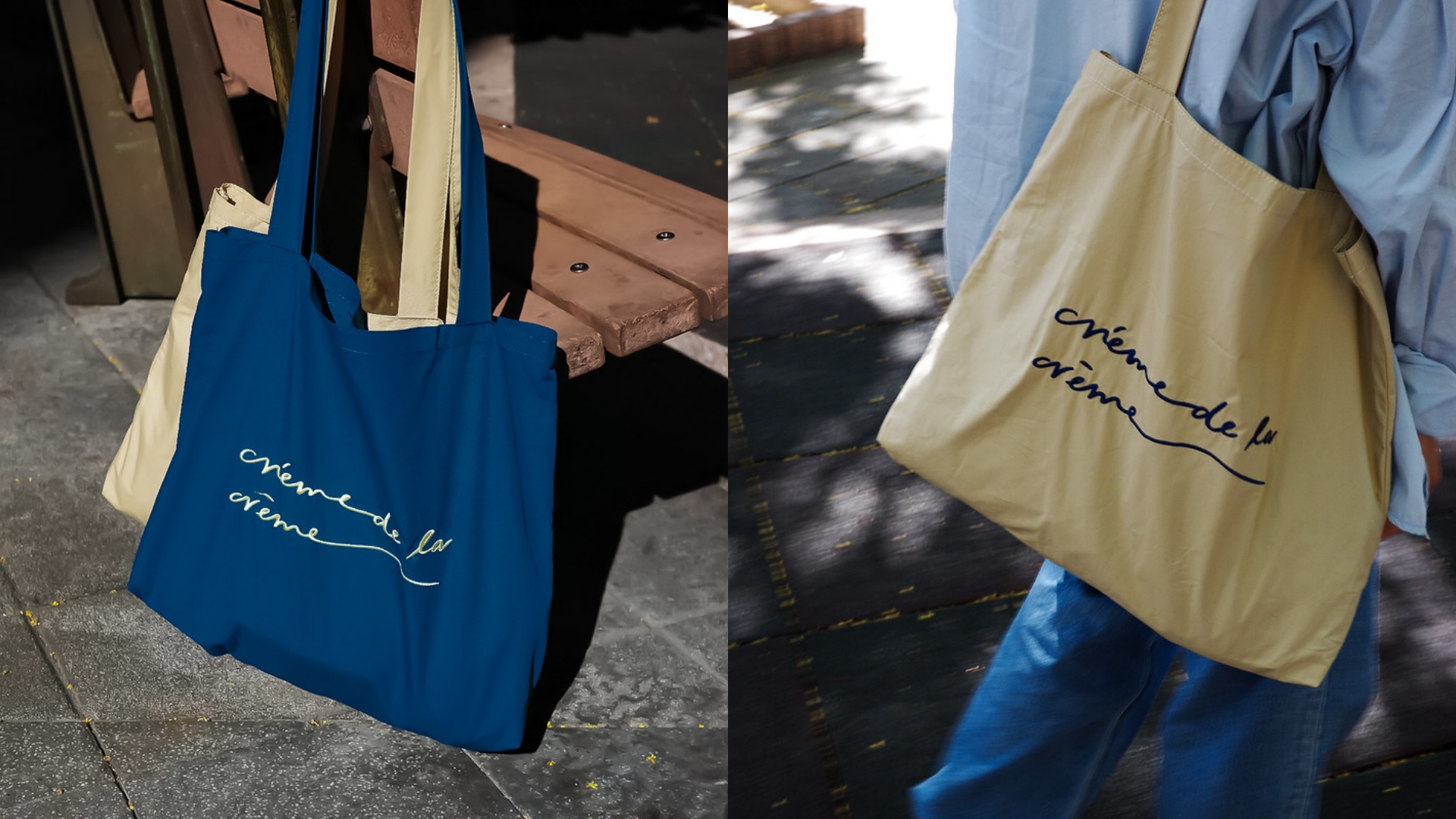 來自設計品牌 No reason 的購物袋,在柔軟的 100% 精梳純棉布料上,以質感刺繡寫下法文「créme de la crème 精華中的精華」,好看之餘,也透過設計表達出生活的精緻感。實裝的容量,從工作電腦到日用品、生鮮蔬果都可以裝,還能收成小體積讓你隨身攜帶,文藝女孩們別錯過這款!