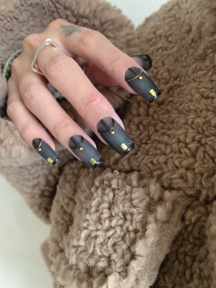 2023下半年的美甲趨勢走向,深受時尚風潮影響,1980年代復古風韻、中性風尚、Quiet Luxury元素皆一一表現於指尖!首先看到的第一款造型,便是以前衛的黑色、灰色為基底,搭配上簡約線條與金屬元件,簡單中帶點個性,基礎又不失有趣。