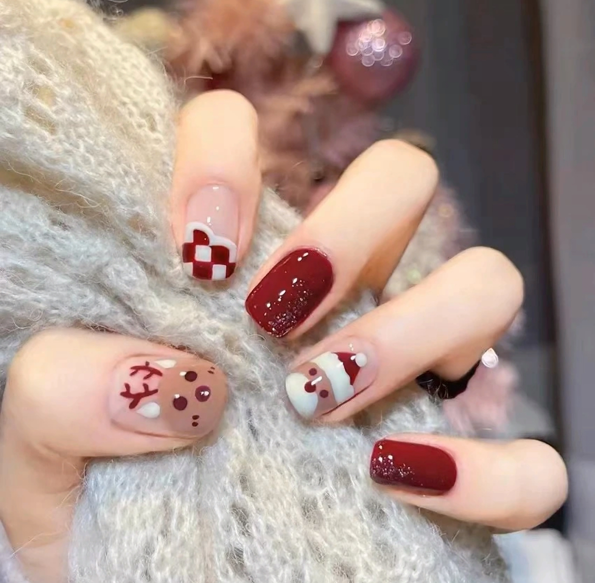 聖誕節怎麼可以沒有紅色系美甲~尤其酒紅色真的好顯白呀!一伸出手拍照都要過曝(笑)