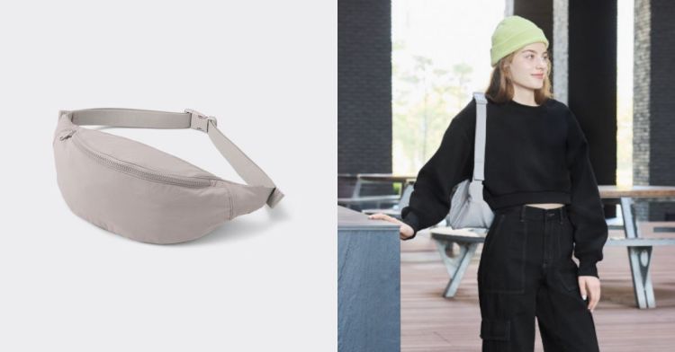 在尺寸上,GU 也做出了調整,此款「柔軟尼龍腰包」比 UNIQLO 的「弧形迷你肩背包」要再小一些,長 31 公分、寬 19 公分,但收納空間依然足夠,可以放入日常出門的必需品,像是:手機、鑰匙、錢包、雨傘等。由於面料的調整,背起來的視覺效果更貼合身體,就算裝滿小物,包包也不顯得過度垂墜。
