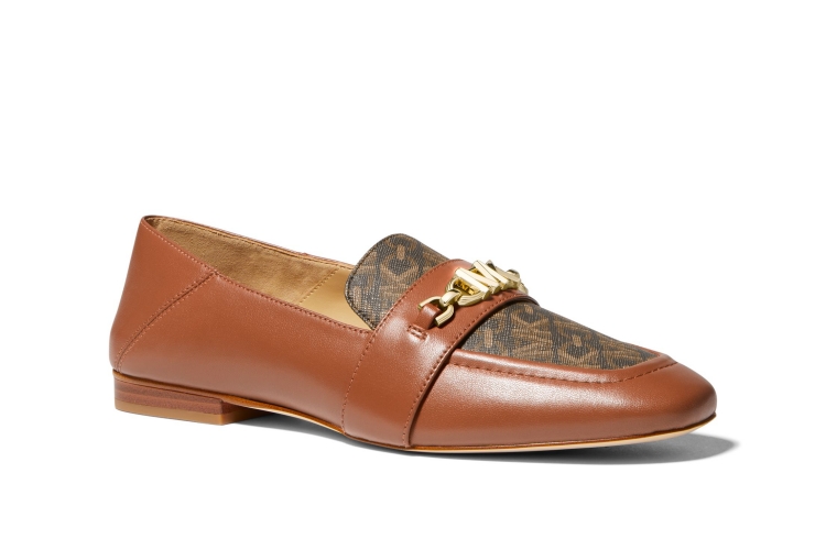 都會女孩們都愛的紐約設計師Michael Kors,今年秋冬以「Empire Signature」的金屬標誌為C位,搭配上同為棕色調的老花,這雙焦糖色「Tiffanie」樂福鞋即將瘋搶OL的荷包!(價格:NT$8,200)