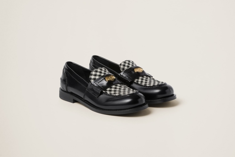 Miu Miu果然是最懂少女心的品牌!不只用迷你裙、肩背包迷倒女孩,在樂福鞋上也不落人後,這雙平底的款式,以最適合秋冬的千鳥格,搭配上有點Y2K的襪套,可愛度+100分!(價格:NT$38,000)