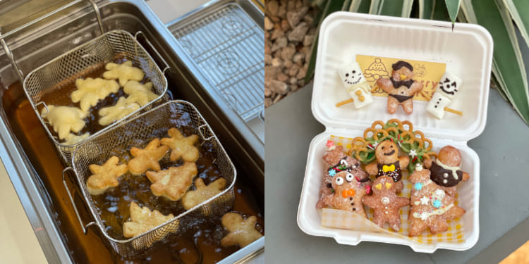 除了限定口味口頌卷,聖誕節必備的元素 Chubby Doo 也全包了!特別推出「聖誕家族 DIY 體驗行程」,手作內容包含了餅乾花圈、棉花糖雪人,還有重頭戲甜甜圈薑餅人及聖誕樹,從壓模、油炸、灑粉、上色到點綴都一條龍自己完成,成品不但超療癒還很好吃!不論是找另一半、閨蜜或親子來都適合,到店體驗的話還會附贈聖誕千層可頌禮盒,如果真的抽不出時間到店內 DIY,店家也推出外帶禮盒,各位媽媽們只要丟一盒給小孩,絕對能換來一個下午的寧靜還不入手嗎?