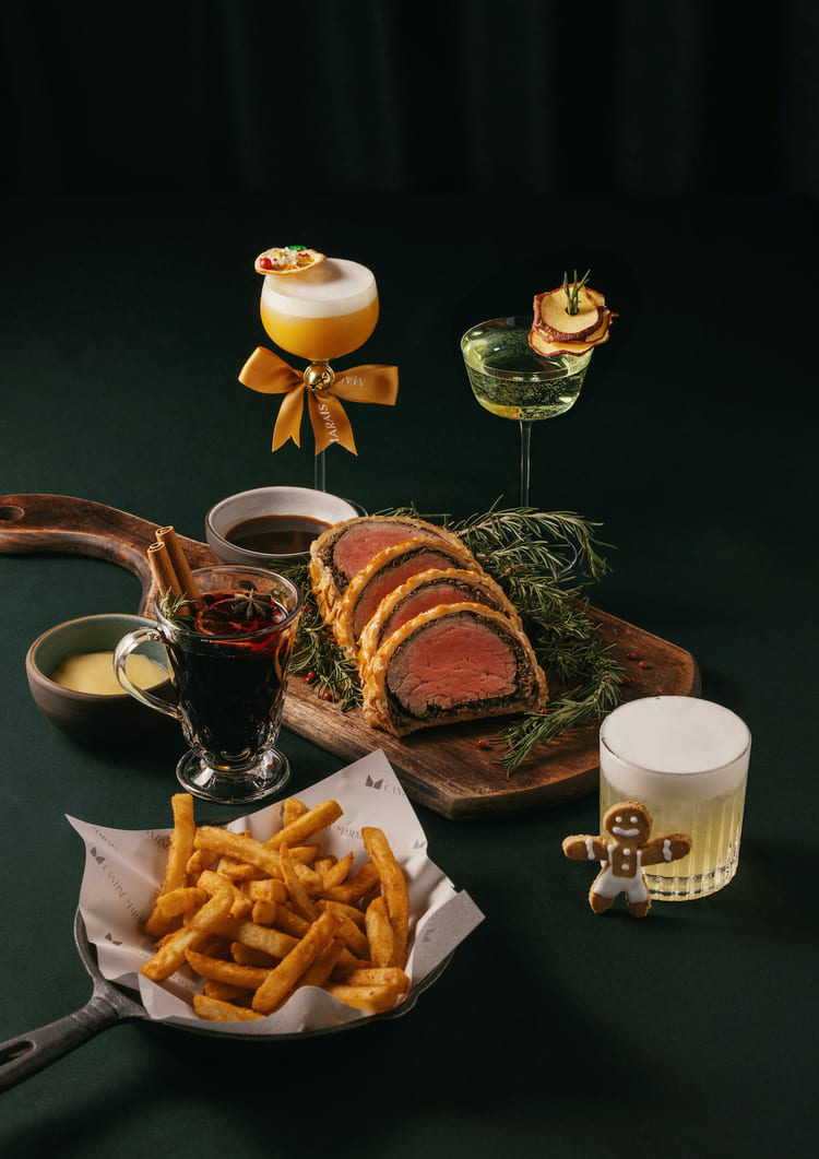 瑪黑餐酒擅長以歐陸烹調手法,結合東西並陳的料理創意而成為許多吃貨的心頭好,12 月也推出多種類冬季新菜,身為客家人的主廚 Kevin,將歐陸經典食材大膽融入客家餐桌記憶,讓大家每一口都吃得到濃濃家鄉味,首推招牌英式「聖誕威靈頓」,以及來自台灣「究好豬」豬五花打造的「義大利脆皮豬肉卷」兩道歐洲傳統餐點,Bartender 也專為節慶特別設計四款以聖誕節為主題的調酒:「Silent Night」、「Snow Man」、「Jingle Bell 」和「聖誕熱紅酒」,將肉桂蘋果、法式甜甜圈起司奶蓋和芒果優格鐵觀音,轉化成一杯杯暖心又暖胃的冬季甜品。