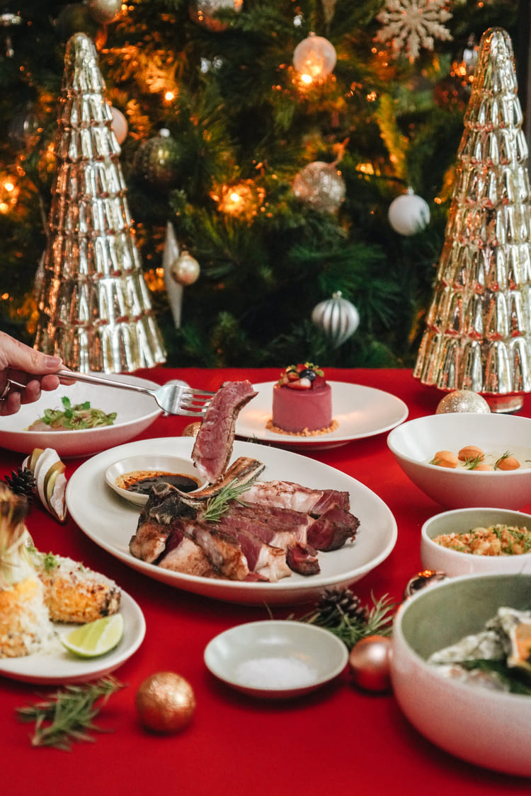 巴菲特最愛的 Smith & Wollensky 因為坐擁 47 樓的絕美景致,加上各式新鮮又優質的牛排,是不少牛排控的首選名單,因應聖誕節 Smith & Wollensky 也推出聖誕套餐,以兩道海鮮冷熱前菜開啟味蕾,沙拉和湯因應聖誕節以紅色義式燉海鮮湯搭配綠色聖誕水果沙拉,主餐則推出符合節慶氛圍的美國頂級香烤牛肋排10OZ.,整塊牛肋排外層抹上特製香料,經低溫爐烤4小時,讓牛排呈現粉嫩多汁樣貌;喜歡美式焦香的饕客則可選擇乾式熟成美國和牛紐約客6 OZ.,乾式熟成與美國和牛濃厚脂香的雙重風味十分迷人;另外還有龍蝦鱈魚和美國羔羊排等不同選擇。吃飽喝足別忘了來一份招牌巧克力蛋糕或伯爵茶千層酥畫下完美句點。