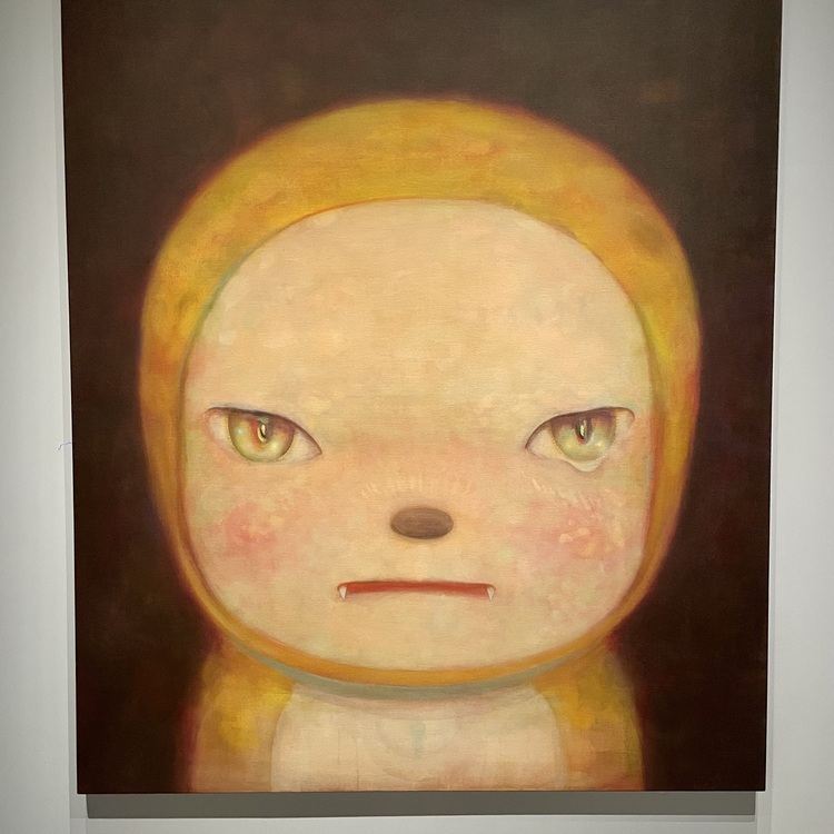 近年非常活躍的藝術家奈良美智也獻上作品「依然被胖虎搶走蝴蝶結的哆啦美」原本想要畫出戴著蝴蝶結的哆啦美,不過最後還是胖虎被搶走了,除了讓人會心一笑的創作靈感外也完美融入奈良美智獨有的創作風格中。