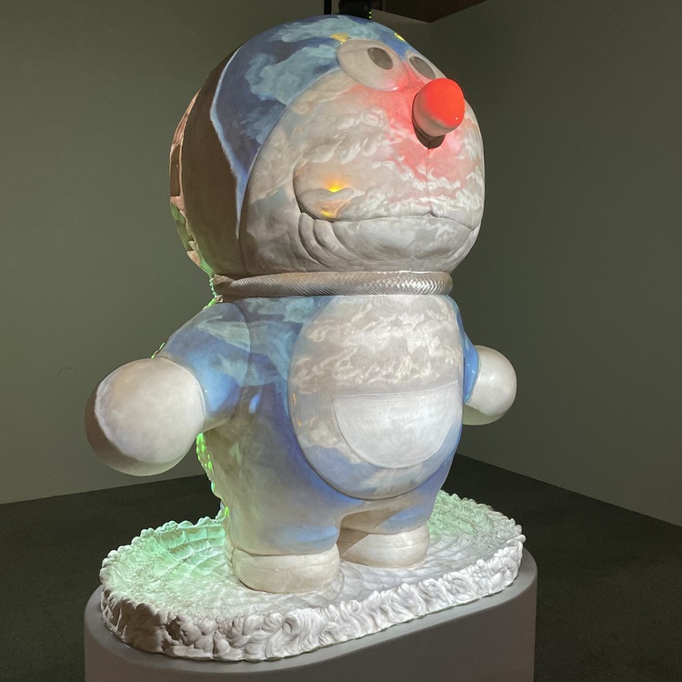 雕刻大師西尾康之以「哆啦A夢的機械生命觀」為主題,使用「陰刻鑄造」的手法,鑄造出 2 公尺高的哆啦 A 夢雕塑,並將 3DCG 影像投影到雕塑上,細緻的鑄造手法搭配精密計算的投影角度,模擬出哆啦 A 夢生命體的形象。