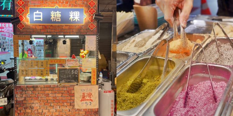 最後則要推薦跟對面水果糖葫蘆同家老闆的白糖粿,就是一種將糯米果粉炸過後再撒上糖粉的古早味甜點,推薦原因則是因為北部比較少見...但雖然看似簡單但其實要炸到好吃也不容易,John 編覺得這家店的白糖粿跟南部的相比吃起來偏 Q 軟一點,喜不喜歡就看個人囉~但這家店的口味也非常多元,除了原味白糖外還有可可、花生、芝麻、麵茶、抹茶、紫薯、杏仁共八種口味,店家也很貼心的一份四條可提供兩種口味做選擇,John 編個人則是超愛古早味到底的麵茶跟帶點苦味的巧克力囉!