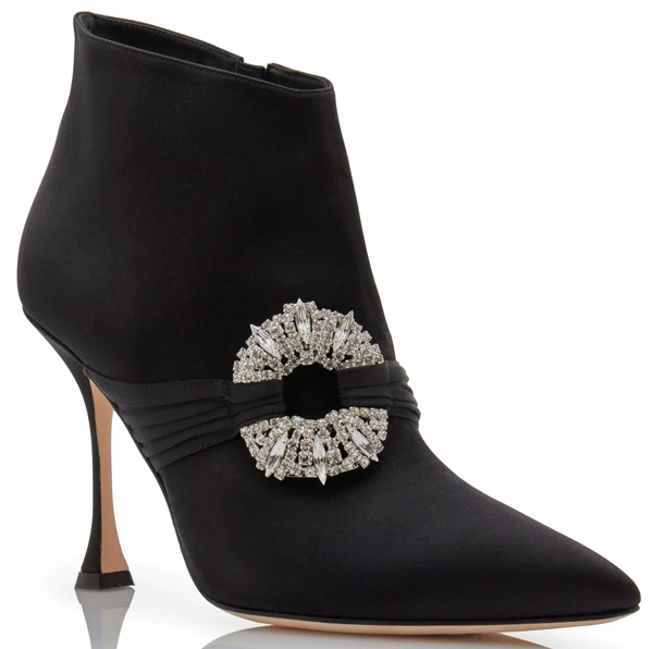 「Prabina」黑色緞面裝飾扣踝靴,NT$ 55,580。