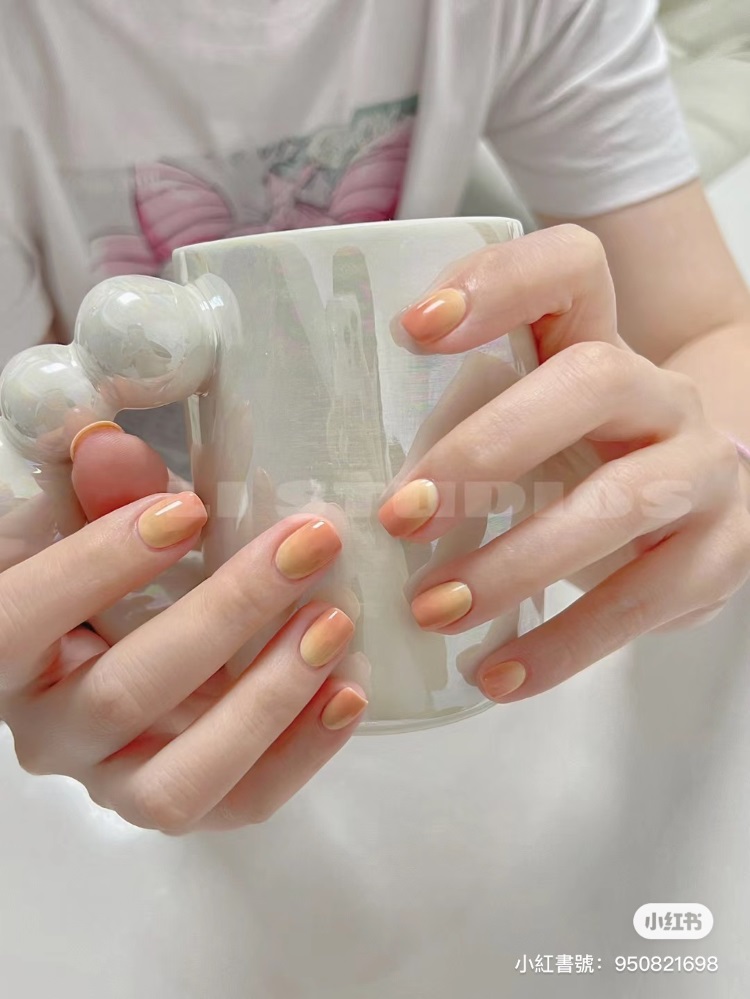 氣質小姊姊想要挑戰年輕感多一點的色調,則推薦以漸層款式作為首選!不論是橘調又或者粉色調,混搭上相近色系:白、奶黃色、裸色作漸層暈染,都能創造裸甲般的自然氣場,不只百搭耐看,且不挑年紀。