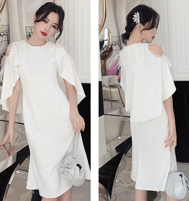 白色洋裝超百搭,穿去跑趴再適合不過了!準備一個閃亮的手拿包、戴上喜歡的飾品,華麗的現身活動派對。這款洋裝的設計師很注重小細節,除了肩膀上像是羽毛般的氣質裝飾,特別有設計感好吸眼球,還有特殊的版型剪裁,讓身材曲線更加柔和好看,低調地散發出性感女人味。