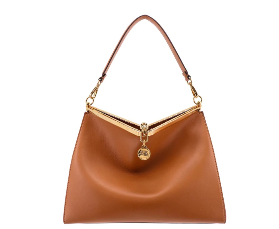 ETRO ETRO VELA這款焦糖色包包,許多明星都在背,是今年秋冬最流行的美拉德色調。包口V型的設計,拎起來呈現自然的弧線很有型。ETRO ETRO VELA帶點小貴氣的輕奢風格,要如何穿出老錢風?可搭配米白色毛呢大衣,自然的散發出名媛高雅氣質。