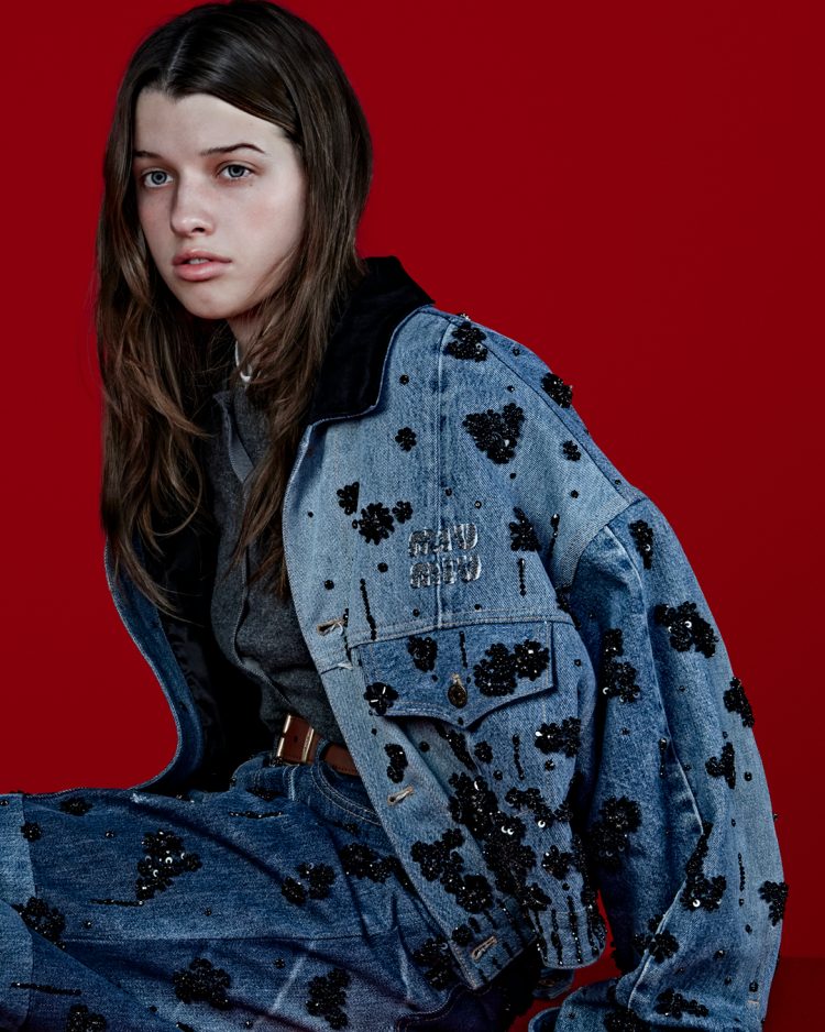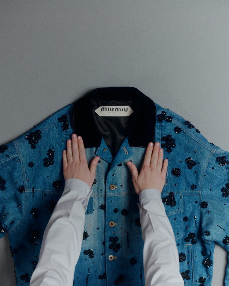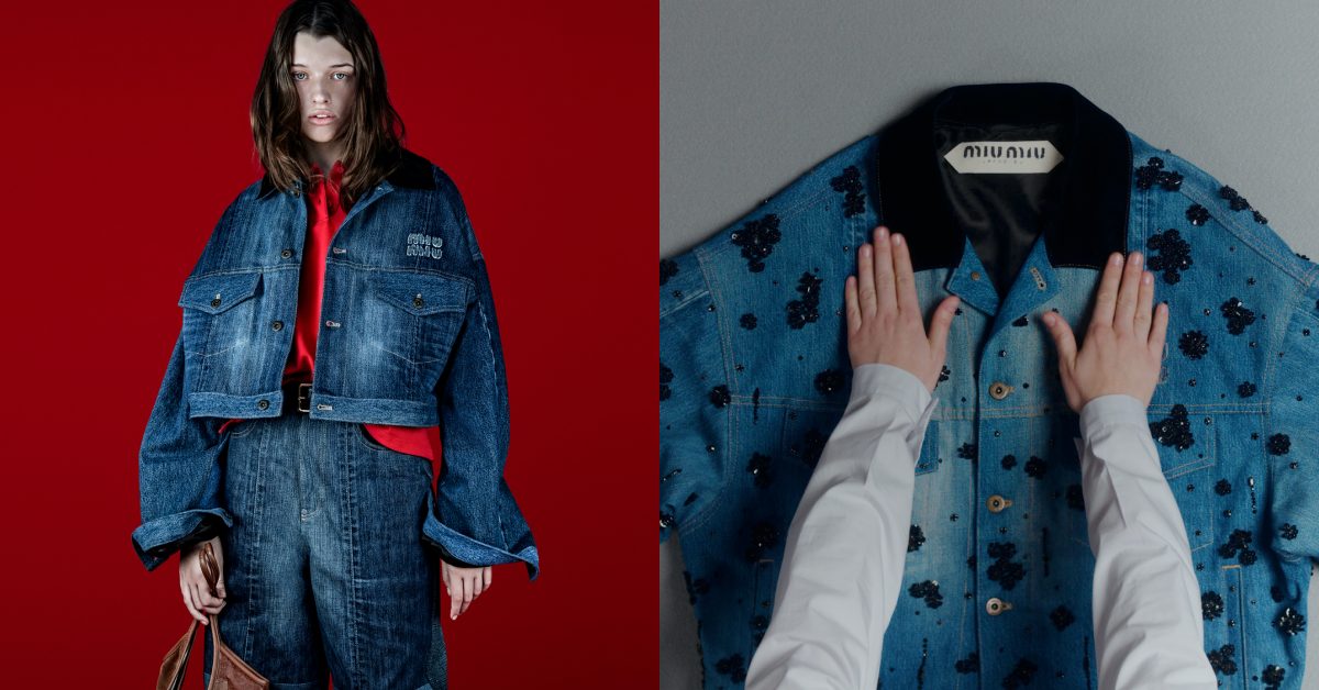 Miu Miu 的「Upcycled」計劃於 2020 年初次登場,品牌在當時便找來對於牛仔材質熟稔的專家,精選了古董的丹寧面料製作服裝,這次 Miu Miu 同樣找來專家合作,運用 2000 年之前的古董牛仔為材料,其色彩經過歲月的洗滌所自然產生的刷色,讓每件服裝單品皆有不同的樣貌呈現,本次一共推出寬版牛仔褲、夾克、短版 上衣和短褲以及棒球帽和髮帶等配件,可讓女孩用成套穿搭展現時髦感。