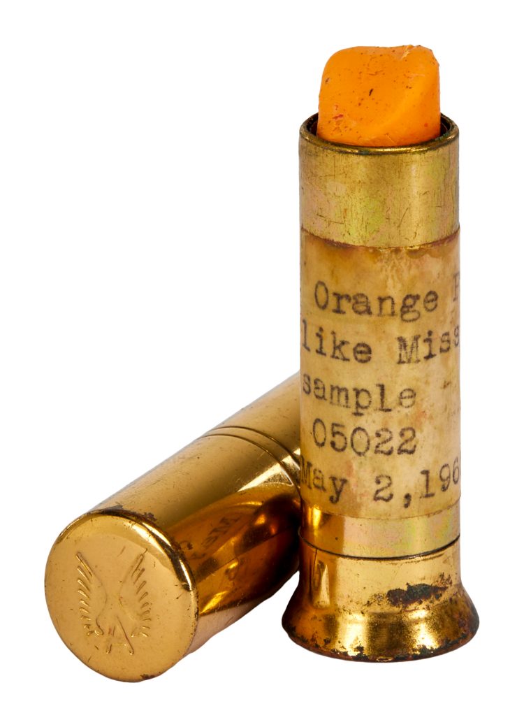 在眾多的拍賣品中,一條來自伊麗莎白雅頓(Elizabeth Arden)的口紅,引起許多人的注意,金色調外包裝外殼,加上打字標籤寫著「Orange Pink like Miss I./ sample 05022/ May 2,1960」 字樣,原來這條口紅是瑪麗蓮夢露生前最愛的顏色,以霧面粉橘調性呈現的色彩,勾勒出瑪麗蓮夢露豐厚迷人的唇形。