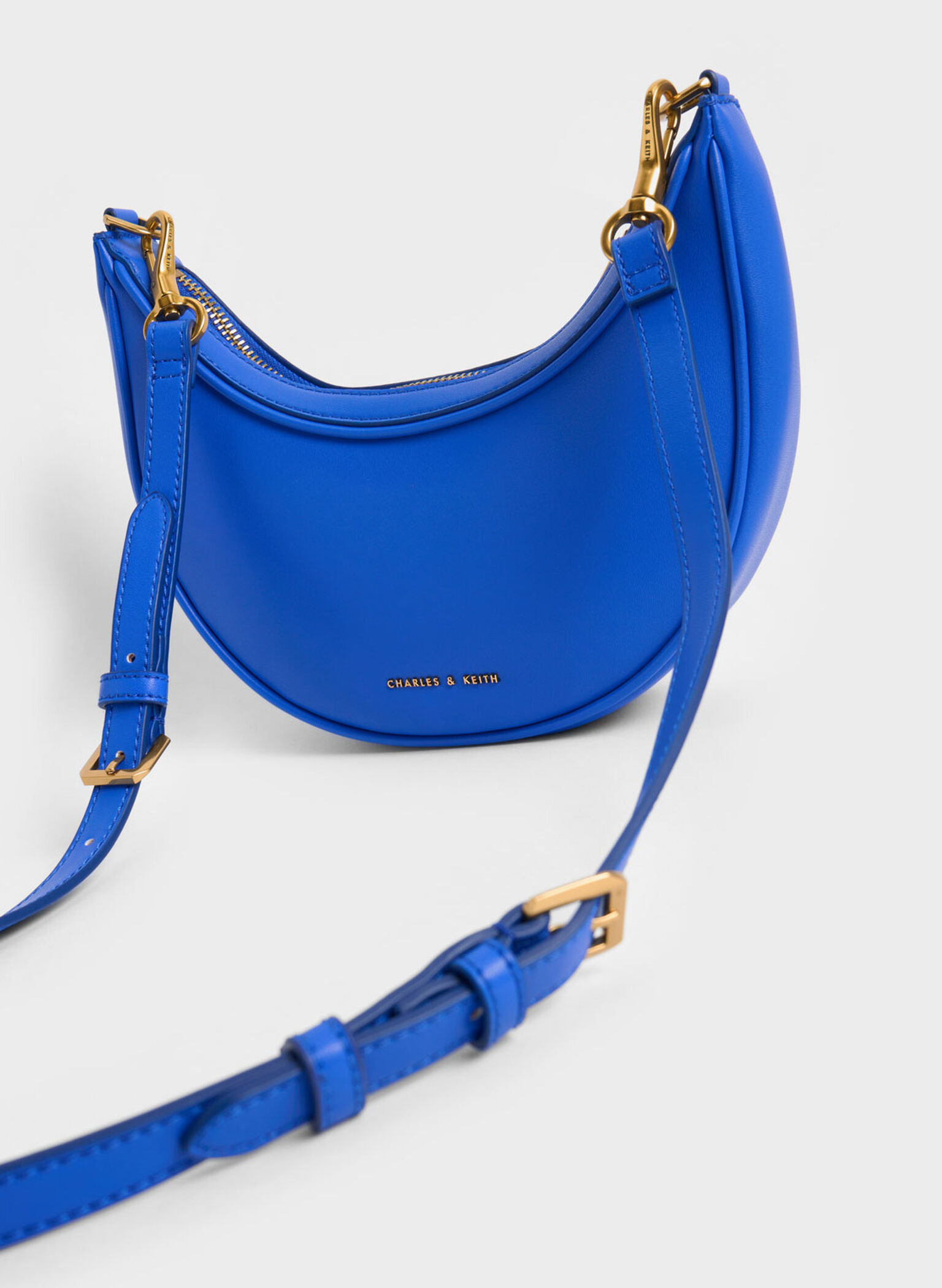 Charles & Keith的Bonnie 半月包與Celine相同,有很彎的半月弧度,不但為流行款,多了菱格紋設計,且提把有鏈條及背帶兩種可以替換,背帶為可拆卸、可調節式,若不想肩背可以換成鏈條,單純手提也極度有型!不同的變化就像背不同的包款,最棒的是小ck很容易保養。