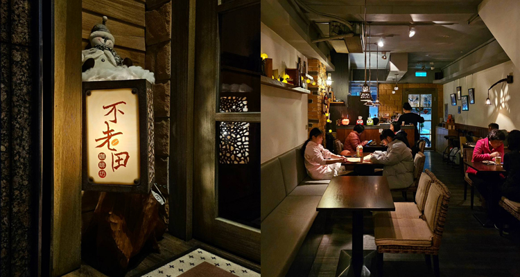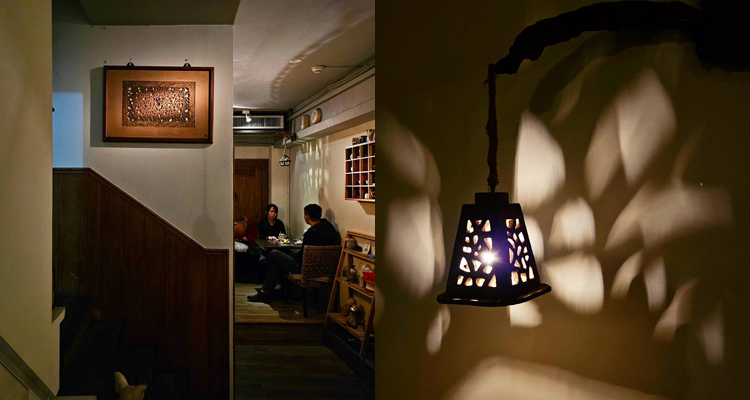 選擇豐富、多元的餐飲之外,另一位友人還曾跟我開玩笑說到:「這家店會讓人不自覺開始打哈欠、想睡覺…」而這也是「不老田」的裝潢特色之一-略為昏黃燈光點綴的溫暖情調。但儘管如此,每張處用餐區,都備有闆娘精心裝飾的吊燈或壁燈照亮,光線從鏤空的造型燈罩中射出、落在牆壁上,光影交織,顯得格外氛圍。