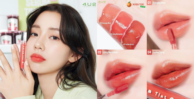泰國國民彩妝4U2 同樣也帶來最新力作!搭上水光唇妝趨勢的列車,這回打造的水光啵啵唇釉,不光採100%純素配方為產製原則,質地中更擁有維生素E、摩洛哥堅果油和玻尿酸等保濕成分。爆水級妝感、甜美不挑膚色的玫瑰糖果系色選,四季使用都很適合。