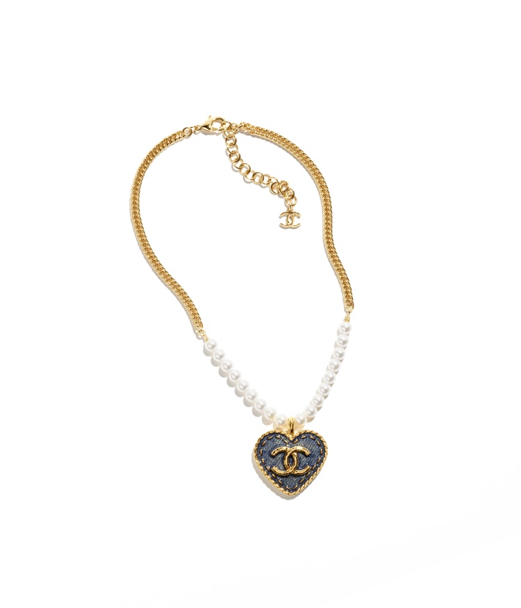 香奈兒女士對於珍珠項鍊相當著迷,更曾說過:「沒有珍珠的女人不能稱為女人!」在她的肖像中經常看見圈圈疊疊的珍珠項鍊,新系列將丹寧材質的雙C logo與心型識別融入於此,不只復古感十足,更顯現女人的韻味!(價格:NT$66,100)