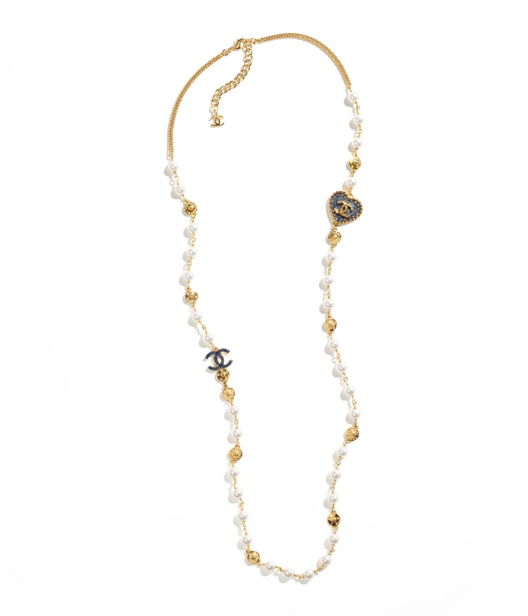 04. 金屬幻象珍珠飾以雙C logo心形長項鍊