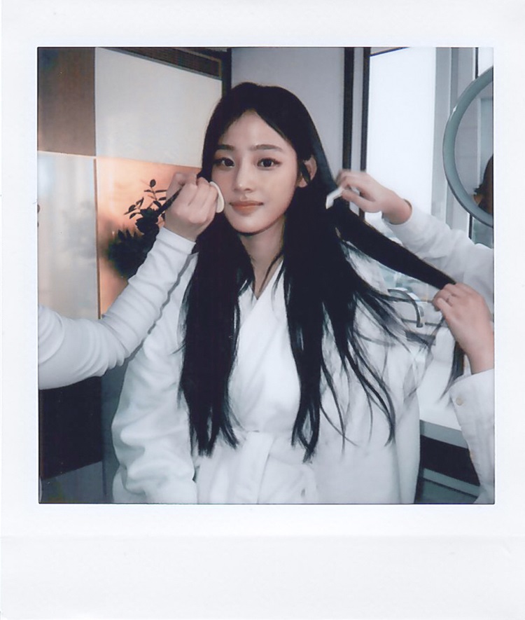 有了好的打底,底妝步驟也不可怠慢!Minji特別選用香奈兒原生美肌微滴水粉底作為底妝主角,強調於光澤與透明感的妝效,完美烘托出少女原生的澎潤稚氣;接著在搭配上裸粉調的1號紅色山茶花唇頰蜜 #5玫瑰木,以及圓形腮紅、水潤聚光棒的多層次堆疊,渲染出溫柔帶點羞澀的粉嫩氣色;最後再以眼線與睫毛膏勾勒出乾淨的眼型,並點綴上水感妝效的玫瑰調唇色,讓整體妝容優雅中不失稚嫩感,好似天生童顏般好感度十足!