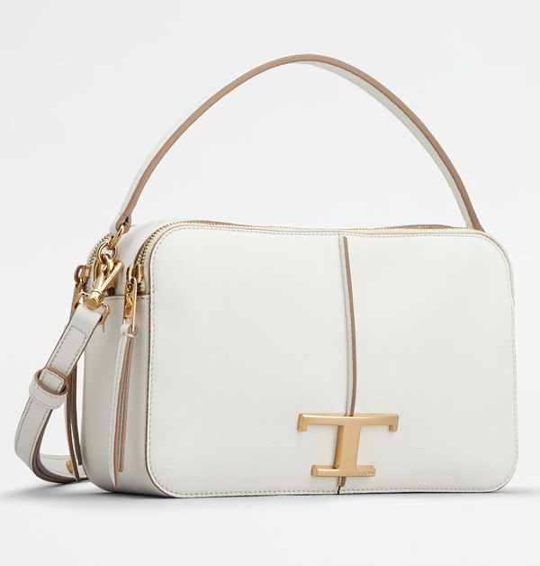 「T Timeless」系列,白色皮革中性款相機包,價格店洽。