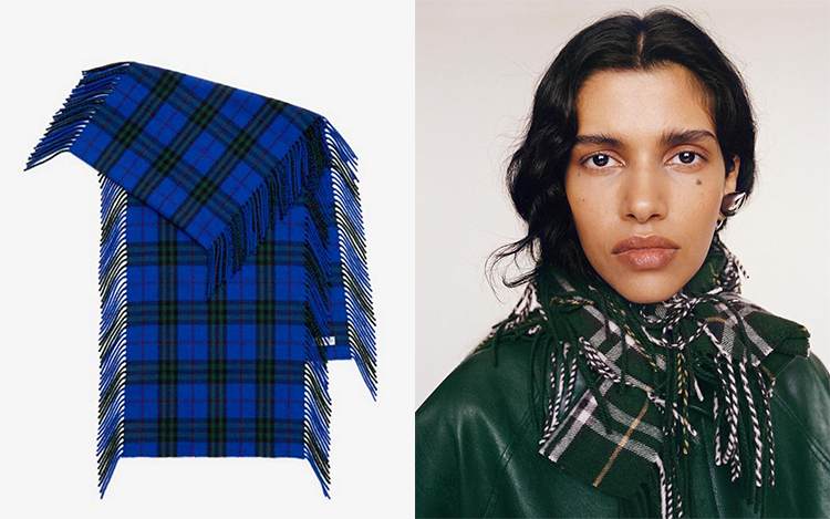除了經典Trench Coat之外,BURBERRY最高人氣的暢銷單品非圍巾莫屬,也是許多人選擇BURBERRY當禮物的首選。儂編極度推薦喀什米爾圍巾,是衣櫃裡不可少的百搭單品,每一年都值得為自己買一條新的BURBERRY圍巾。Daniel Lee主導後,推出在長邊加流蘇(通常是短邊加流蘇)款式,配上騎士藍、常春藤綠、經典米色與格紋搭配,是搶眼又濃厚的英倫味時尚單品。