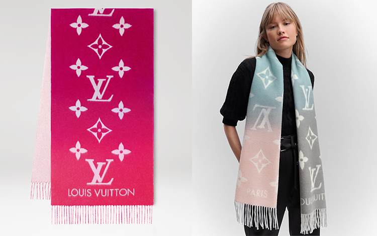 LOUIS VUITTON的圍巾選擇完全不輸包款,相當豐富,儂編推薦最新的Reykjavik Gradient圍巾,是採用手染喀什米爾毛線織成的漸變色彩圍巾,這是相當複雜的工藝,圍巾的色彩必須先將毛線染色,這樣的漸層色彩轉變,需要很精密地計算後再將毛線染色。這款Reykjavik Gradient圍巾不僅有標誌性的Monogram織紋,漸變色彩的處理也非常有冰島極光的氛圍,是非常討喜的禮物。