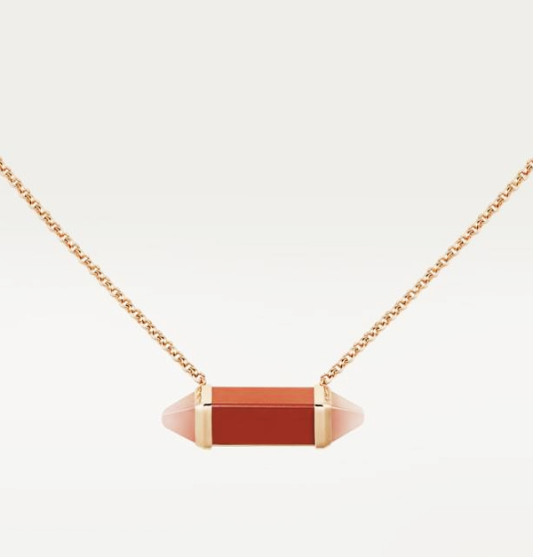 「Les Berlingots」系列,玫瑰金鑲嵌紅色碧玉及粉色玉髓項鏈,價格店洽。