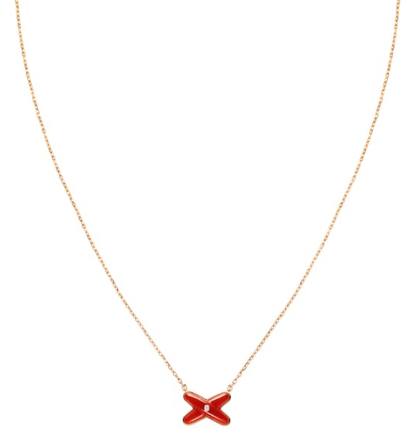 以「情感珠寶」聞名的Chaumet,象徵人與人之間情感聯繫的「Liens」系列,是品牌的代表之作。標誌性的「×」設計符號,就宛如原本在平行線上的兩人受到緣分牽引而有了交集,從相識到相戀,緊緊相依;適合新年開運的紅色墜鍊,以清新和盈亮的色澤呈現而出,充滿著生氣勃勃的活潑調性。