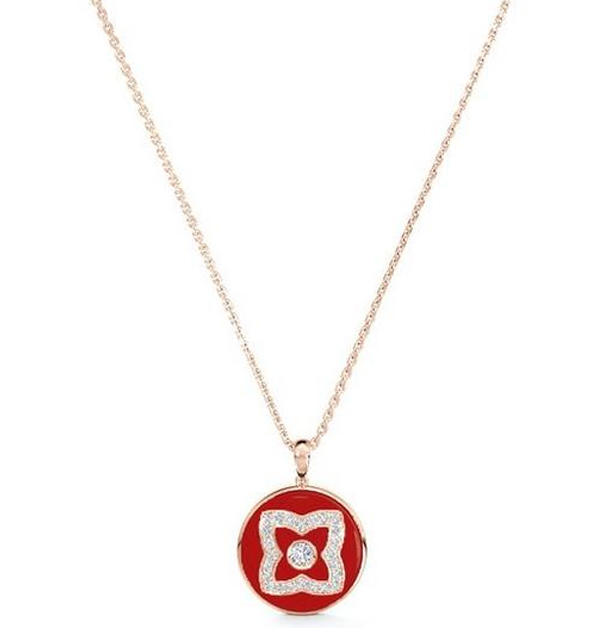 「Enchanted Lotus」系列,玫瑰金紅色琺瑯圓牌項鍊,NT$ 80,000。