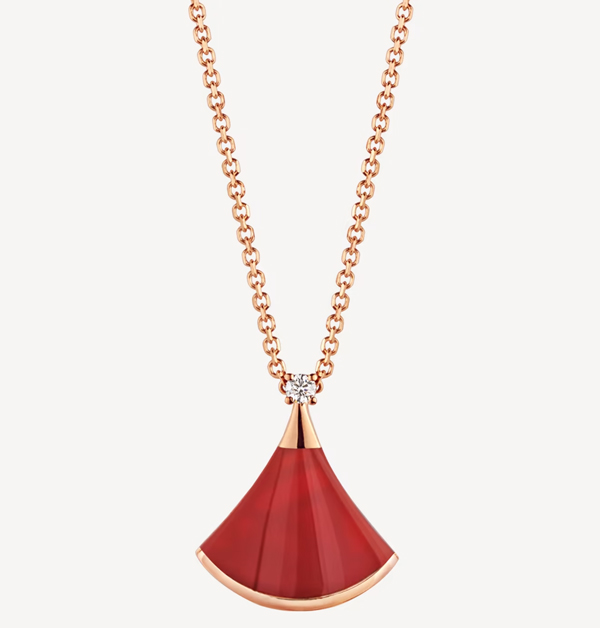 靈感源自羅馬「卡拉卡拉浴場」中馬賽克大理石地磚圓滑線條的「Divas' Dream」珠寶系列,透過Bvlgari(寶格麗)每一季新作、各式不一的珍稀寶石材質與鑲嵌工藝,將這如同女人得天獨厚的曲線設計,展現出絕對極致的溫柔優雅。而這條應景的玫瑰金鑲鑽紅玉髓墜鍊,鮮豔光澤獨閃耀散發,絕對能予以女性愈發耀眼的魅力。