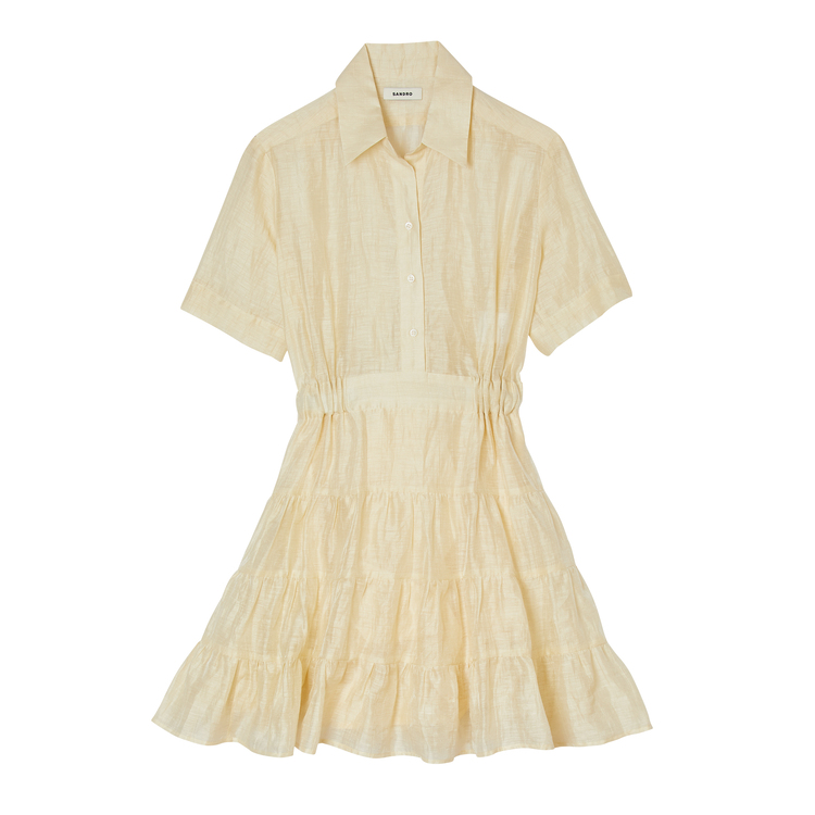 擔心白色容易髒又不好保養,那就選擇這件米白色收腰短袖洋裝吧!帶點微香檳金的米色洋裝不但質感爆表還很顯白,澎澎 A 字裙再給你一雙又瘦又長的美腿,領子與短袖設計,也大大降低這件洋裝的攻擊性,是件進可攻、退可守的百搭首選。
