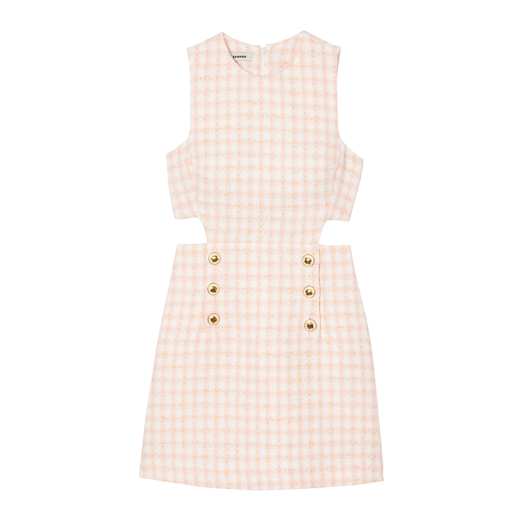 粉色粗花呢腰鏤空連身裙(NT$12,590)