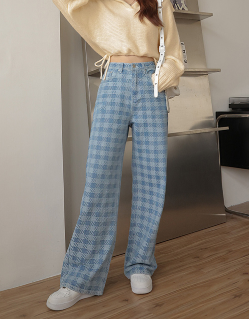 在清一色的素色牛仔褲中,AIR SPACE 推出的棋盤格牛仔寬褲便顯得相當特別。高腰直筒版型不僅適合搭配各種韓系短版上衣,更擁有拉長腿部視覺比例的效果。最棒的一點是,它提供了S~3XL 的豐富尺寸,讓各種身型的女孩都能美美穿上身!