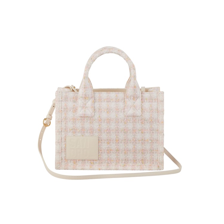 同樣來自法國的 Sandro,今年春夏推出一系列做工精細的粗花呢服裝,這款包則延續服裝的女人味,以實搭的托特包型結合溫柔小姊姊必備的粗花呢元素,再加上皮革背帶與 Logo 拼接,為整體包型添增一絲個性。