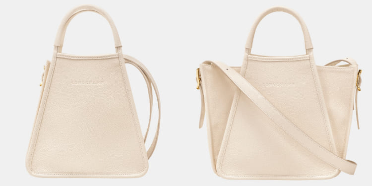 這款以柔軟又堅固的牛皮打造,米白配色加上上寬下窄的包型,讓你舉手投足都散發優雅氣息。而包包的可拆式肩不只帶能供肩背、手拿外,還有壓扣按鈕能根據當天的穿搭或包包內容物去調整包型,讓你只需花一個包的錢就像擁有兩個新包一樣!