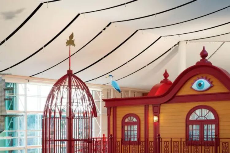 除了立面設計,走進室內,更讓人流連忘返,像是:女主角「蘇菲」的床和帽子,仔細看桌子,還有電影場景出現的經典早餐組合「培根加蛋」。霍爾的移動城堡內,還原了裡面琳瑯滿目的家飾陳設,讓每一個走進建築物內的人,可以仔細地找尋主角留下的物品,也可以和這些道具參與互動,增添趣味性。